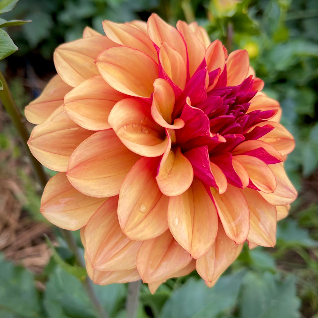 If you're looking for a compact border dahlia that goes amazingly well with amber fall foliage, has dark reverse petals that accentuate its beautiful form, and is free flowering - you should try Dahlia Creme de Cognac. Warm shades of amber, copper and rose gold make for a delightful bloom!