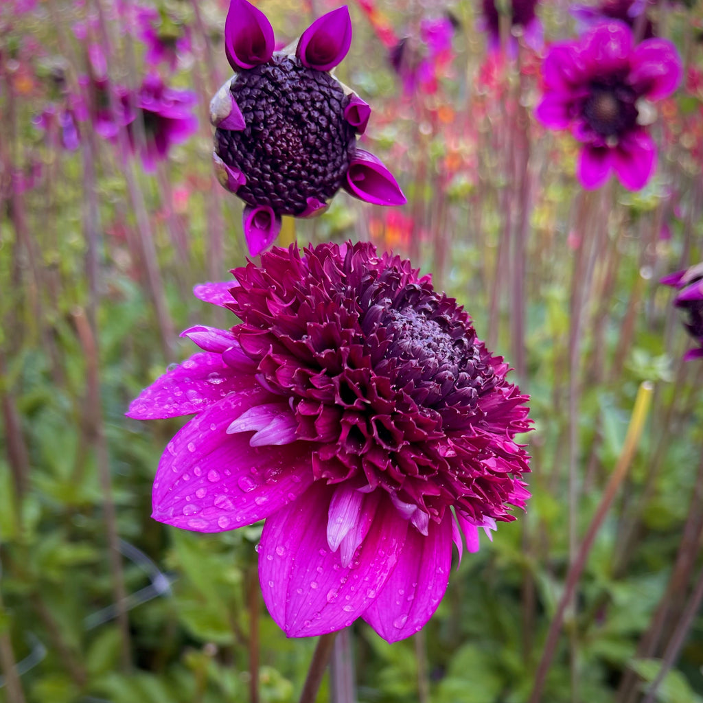 Dahlia Misses Amy is a beautiful bright pink anemone type bloom, with a pincushion center and swept back outside petals. It is very prolific and will add a fun texture to your garden border, and will look unusual and playful in bouquets.